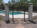 3-rail curved decorative pool fence with hand-hammered scrolls